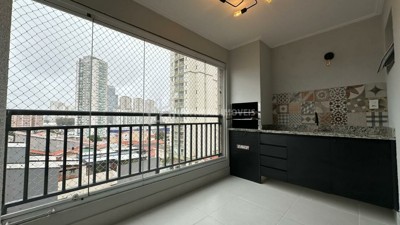 O apartamento também conta com um espaço gourmet com churrasqueira, pia e gabinete. Pronto para morar!