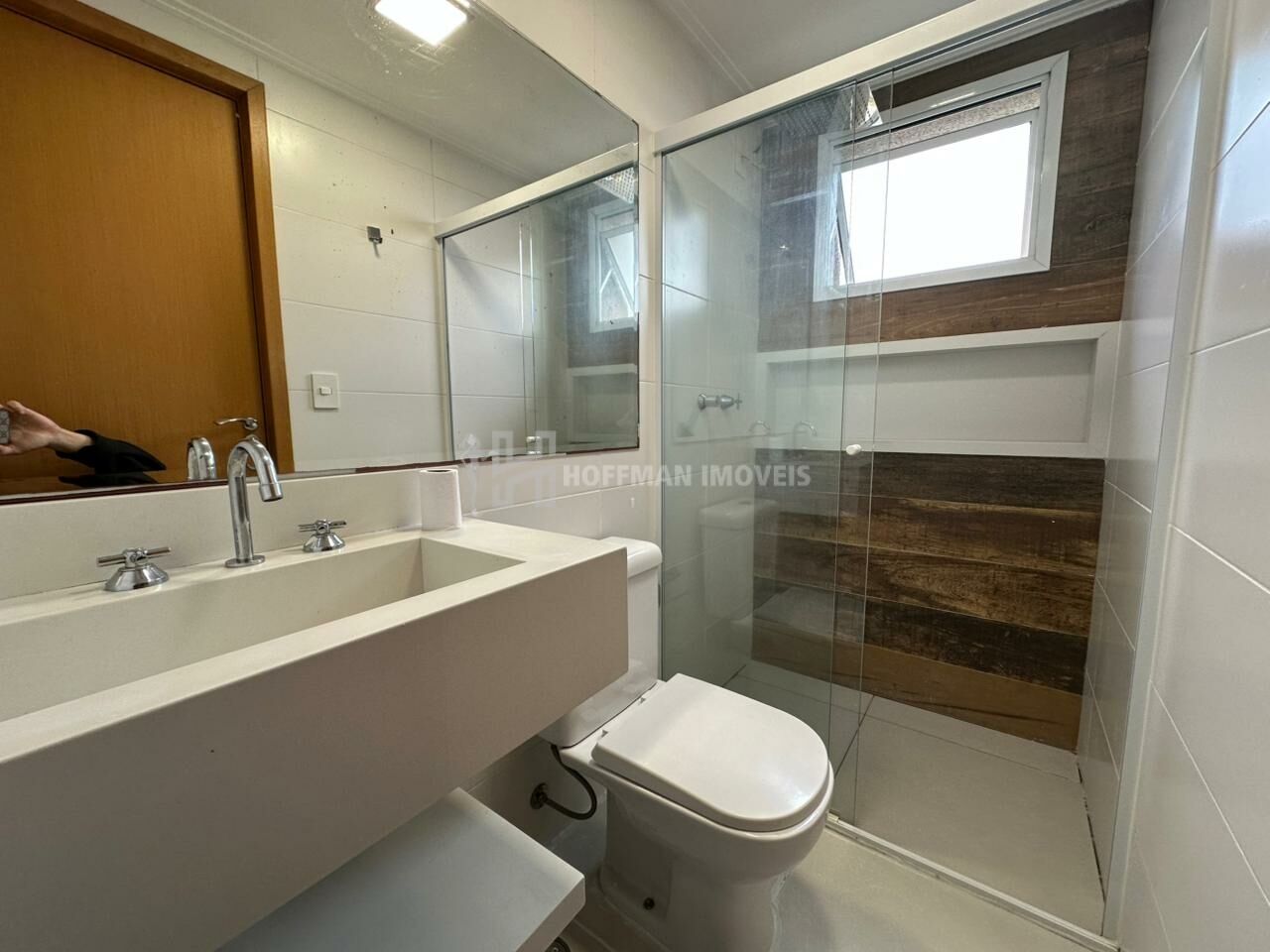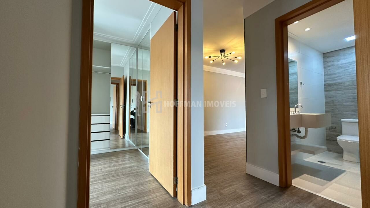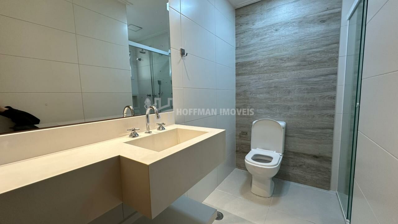 A suíte dispõe de um armário em L com portas espelhadas são 2 wc e um lavabo, todos equipados com lavatórios em quarto branco, nichos nos boxes, box de vidro, espelhos, assento sanitário com fechamento solt close, suportes para toalhas e duchas já instaladas. A cozinha é completa, com armários planejados, cooktop, forno e coifa. O aquecedor a gás e a iluminação estão instalados.