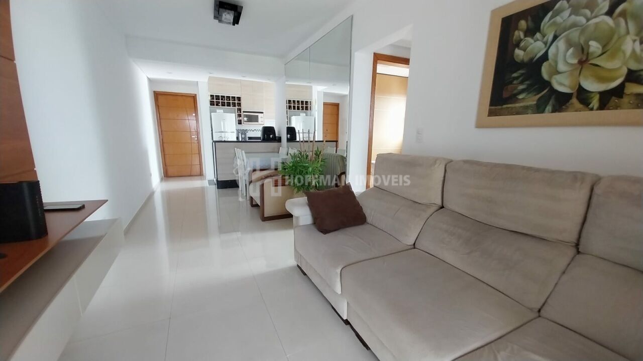 02 dormitórios sendo 01 suíte, sala com dois ambientes, sacada com vista livre, cozinha americana com armários planejados, banheiro social, área de serviço e 02 vagas de garagem.