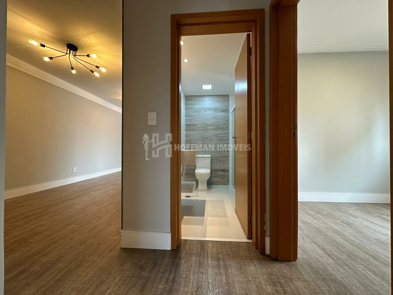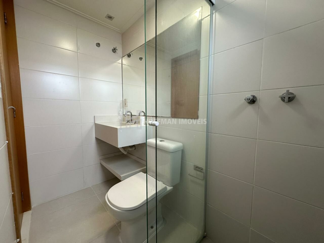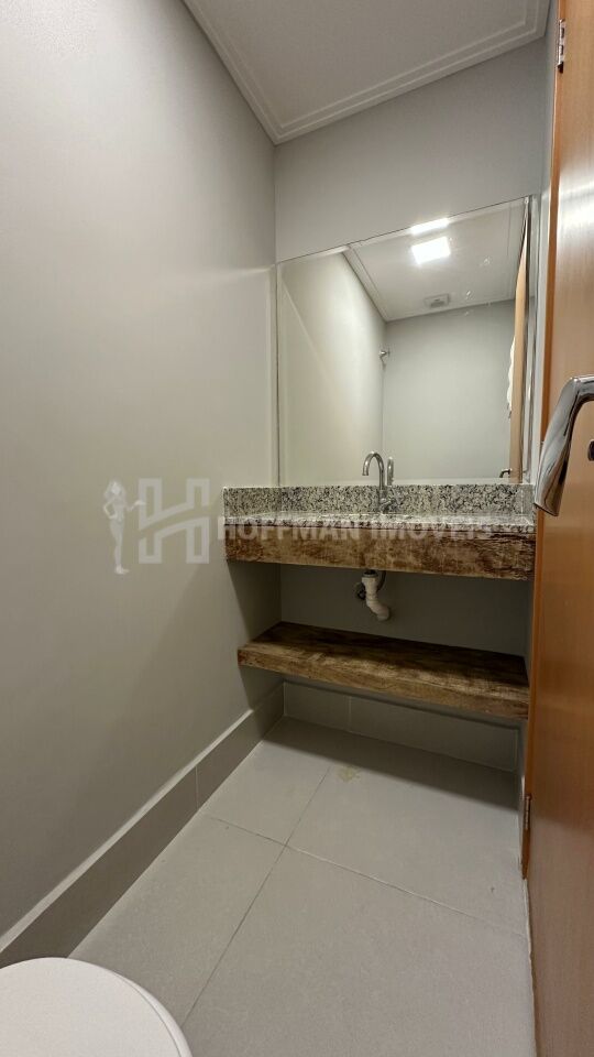 A suíte dispõe de um armário em L com portas espelhadas são 2 wc e um lavabo, todos equipados com lavatórios em quarto branco, nichos nos boxes, box de vidro, espelhos, assento sanitário com fechamento solt close, suportes para toalhas e duchas já instaladas. A cozinha é completa, com armários planejados, cooktop, forno e coifa. O aquecedor a gás e a iluminação estão instalados.
