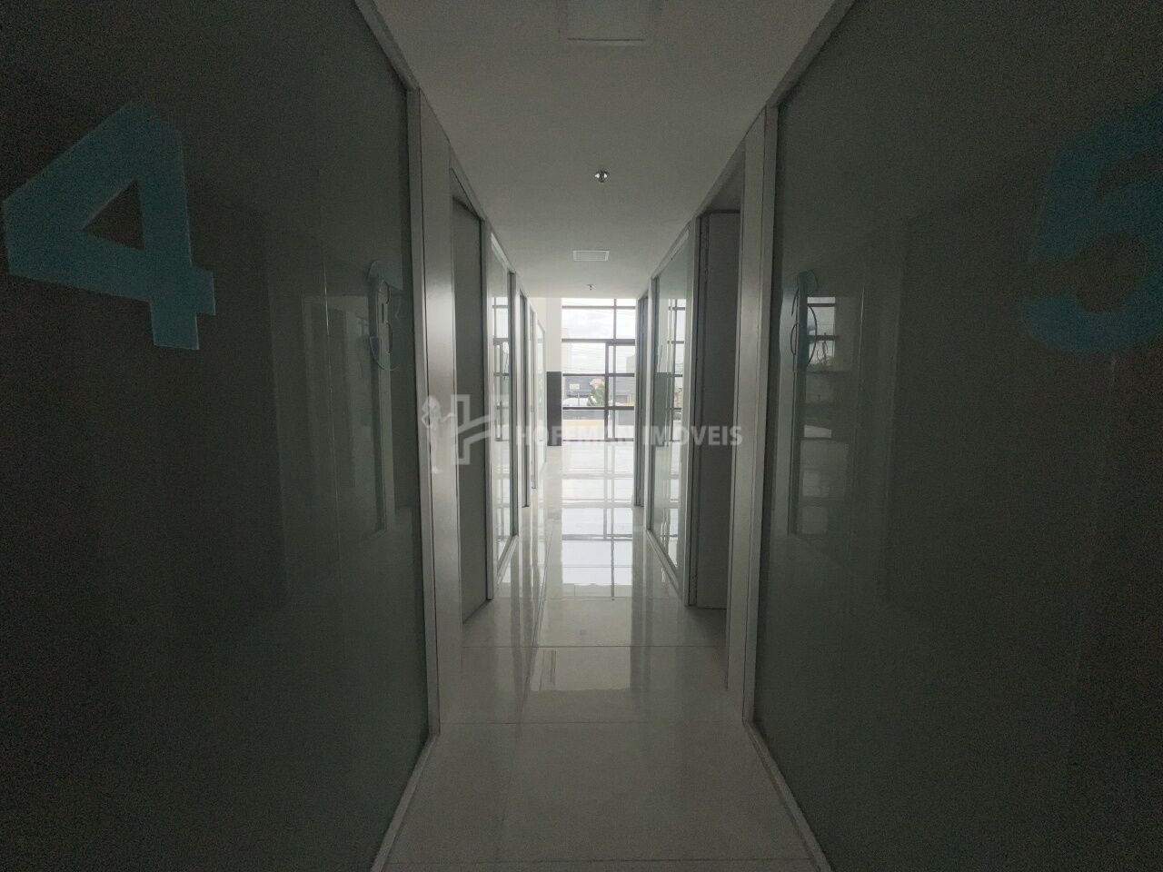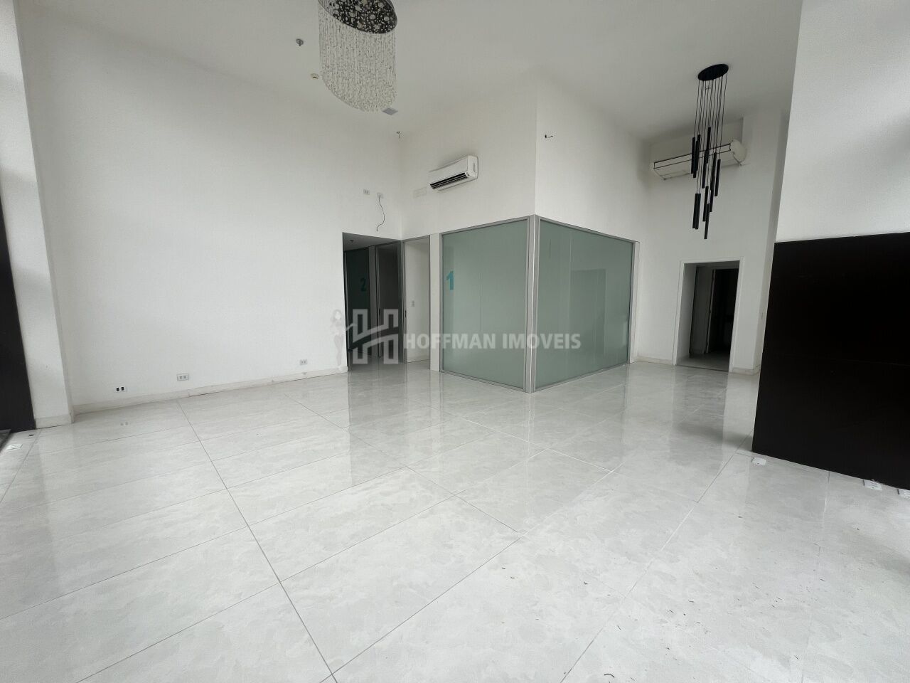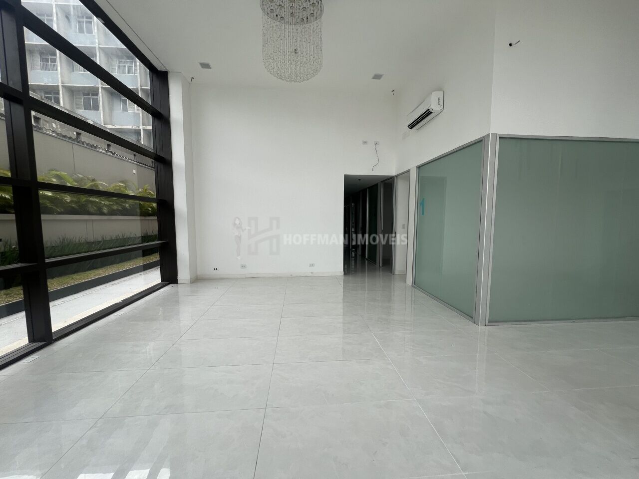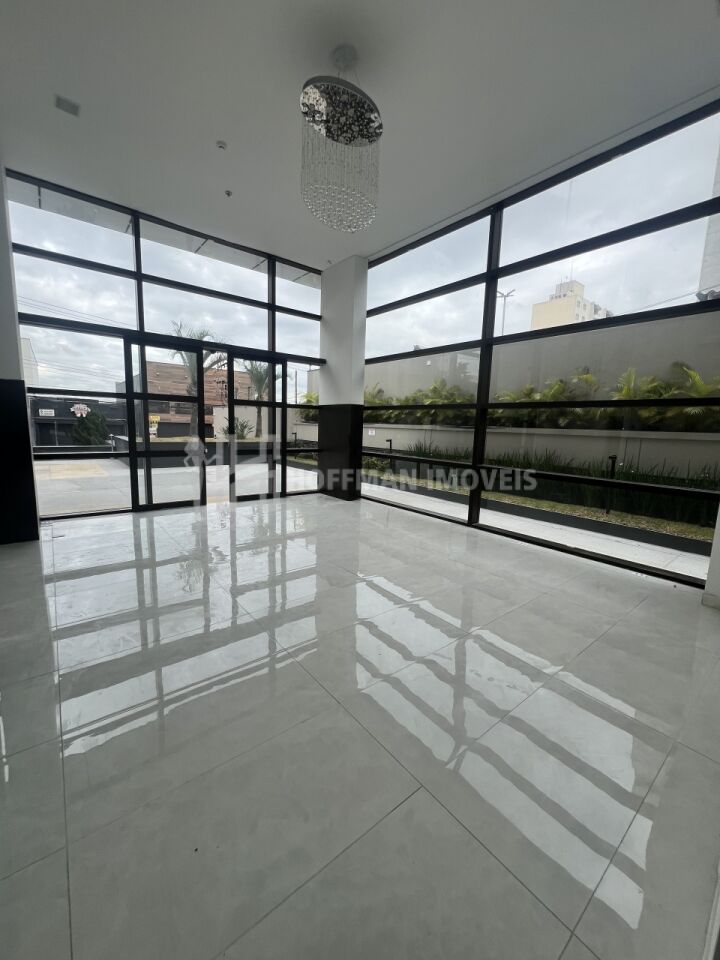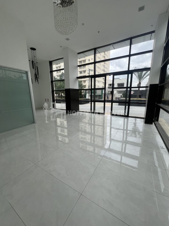Salão principal amplo, toda envidraçada com ótima iluminação.