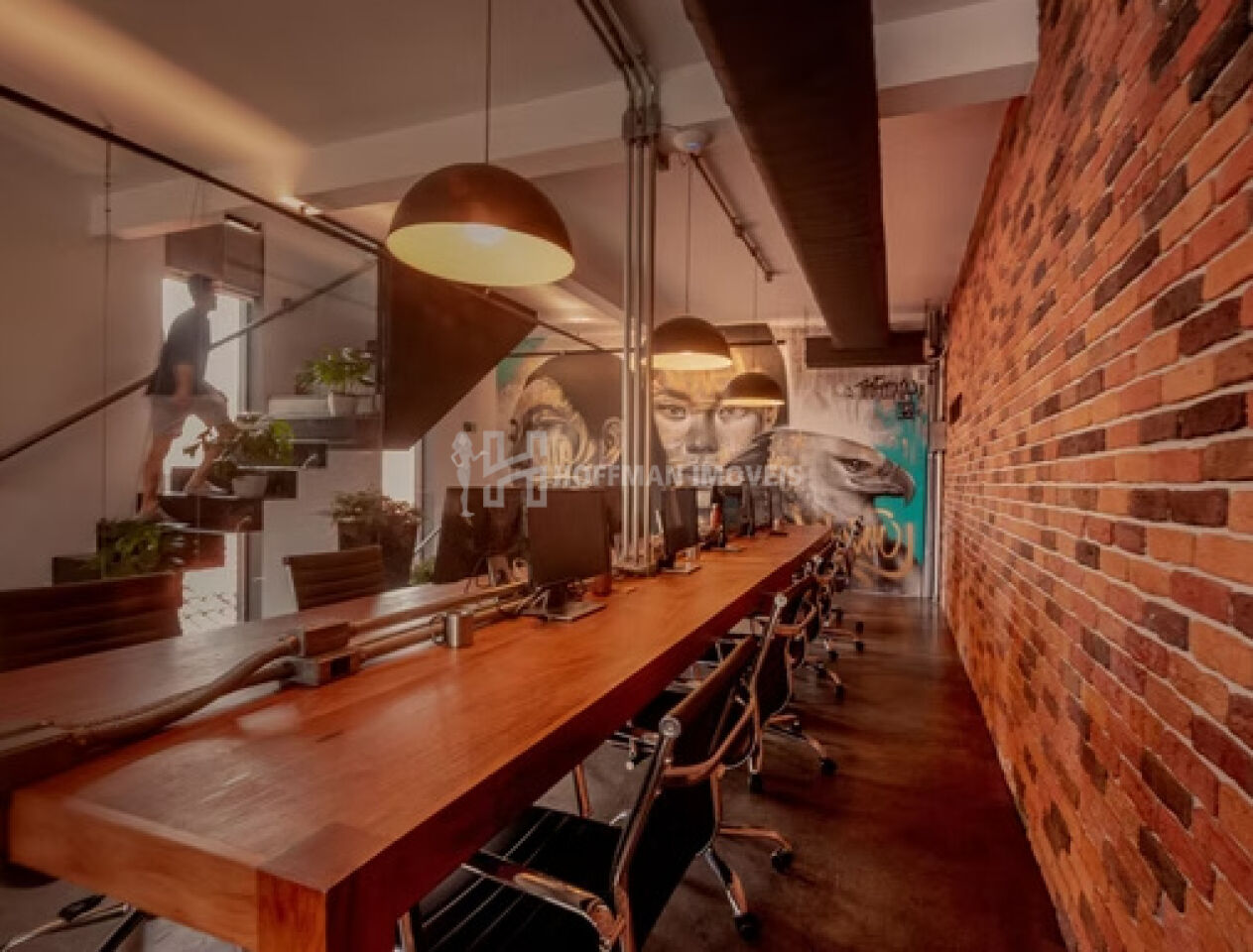 Possui aproximadamente 250m², distribuídos em três pavimentos, com mezanino no térreo e área externa na cobertura, com espaço gourmet preparado para confraternizações. Todo o imóvel é refrigerado com sistema de ar-condicionado dutado e dispõe de torre de servidor com toda rede cabeada.